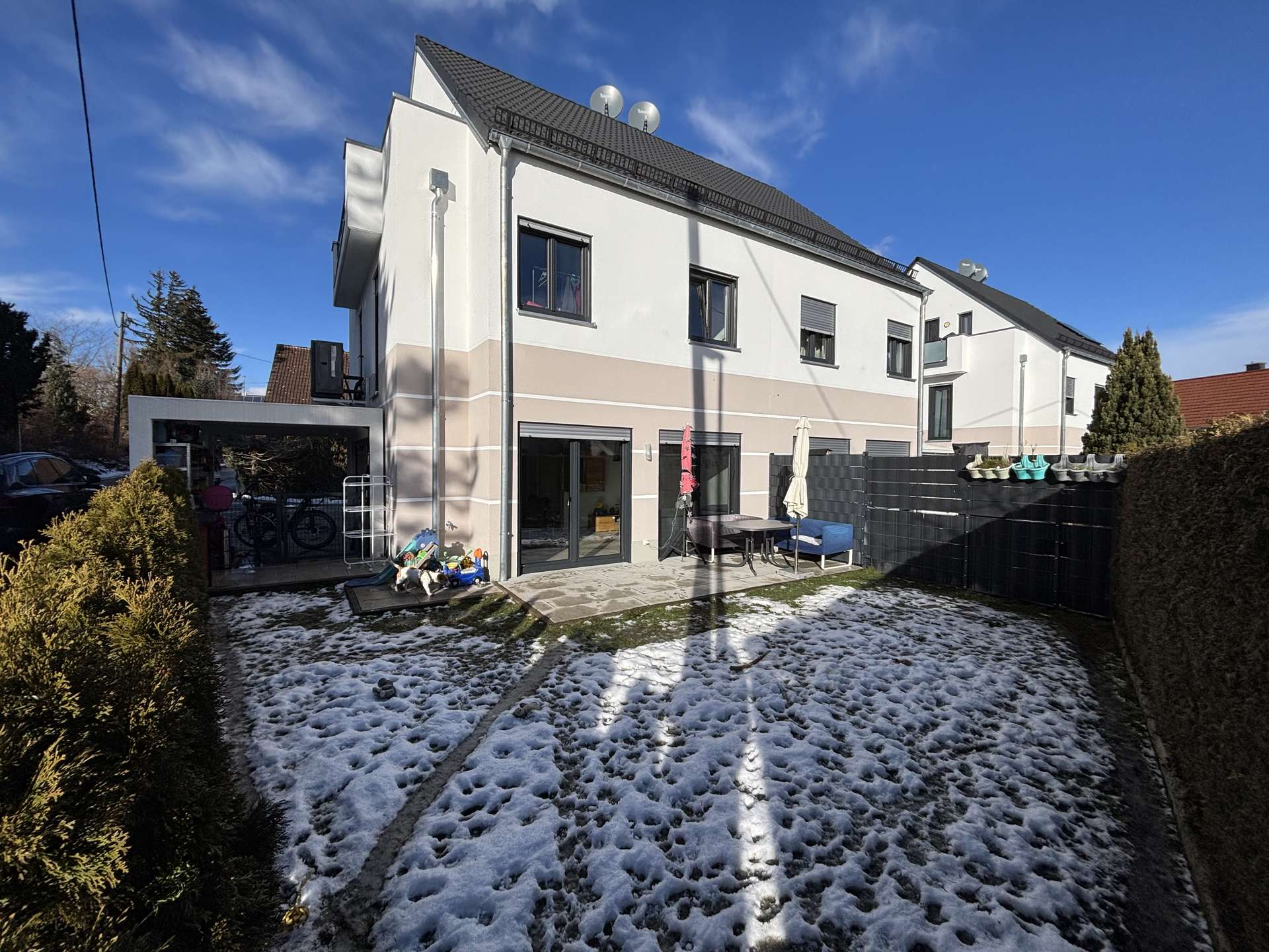Der Kaufpreis beinhaltet auch einen dedizierten Stellplatz, der zusätzlich mit 25.000 € bewertet wird. Diese Immobilie verbindet modernes Design mit praktischer Funktionalität und liegt in einer ruhigen und gefragten Wohngegend von Langerringen.