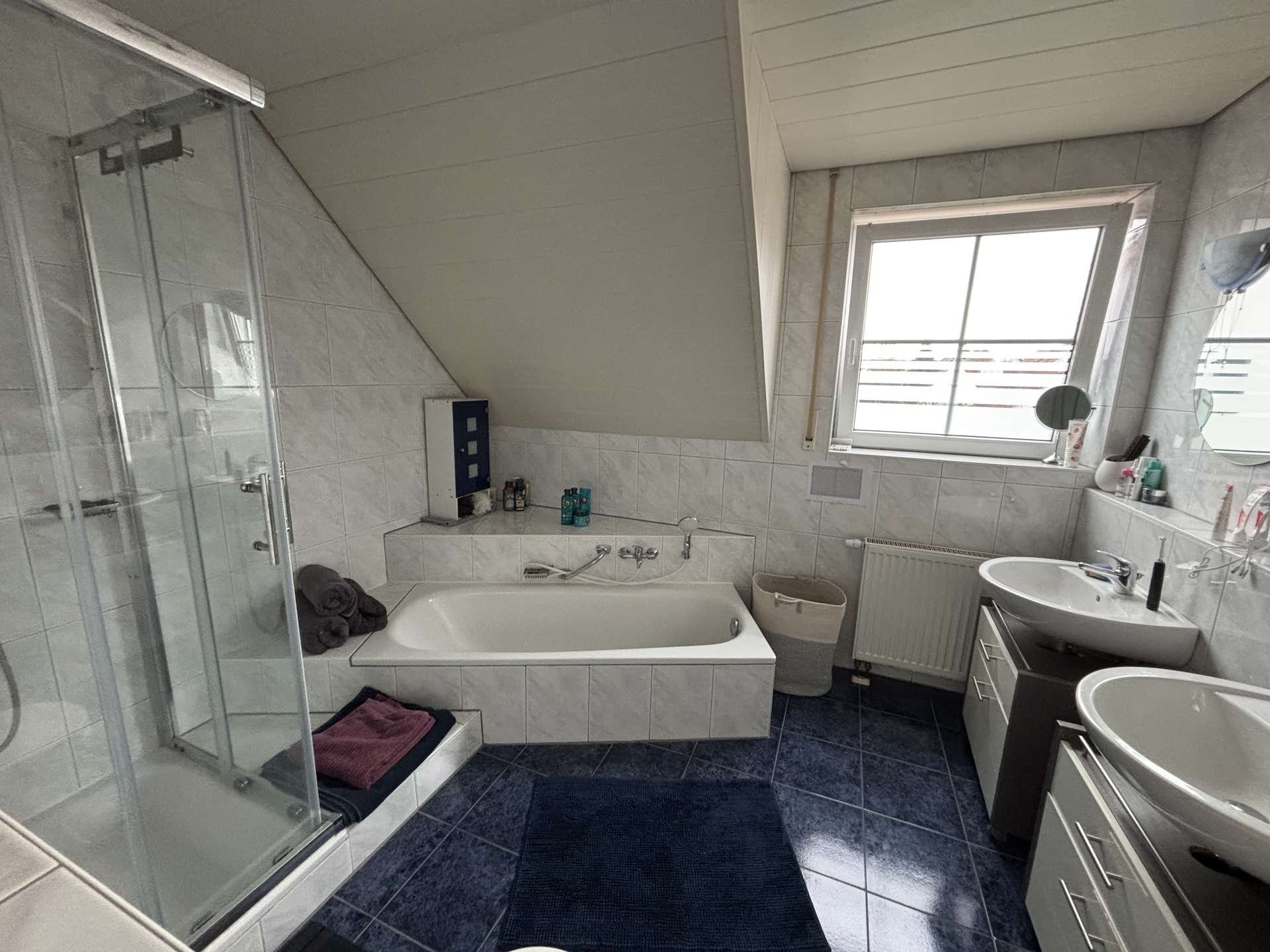 Das Obergeschoss ist mit Schlafzimmer, zwei Kinderzimmern bzw. Arbeitszimmern und dem Bad (mit Dusche und Badewanne) ideal aufgeteilt. Ein weiterer Wohnraum kann im ausgebauten Dachspitz des Hauses toll genutzt werden.