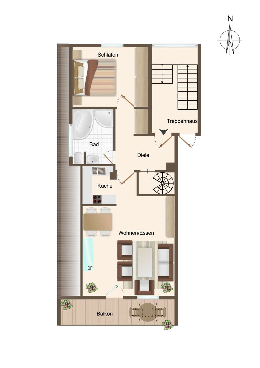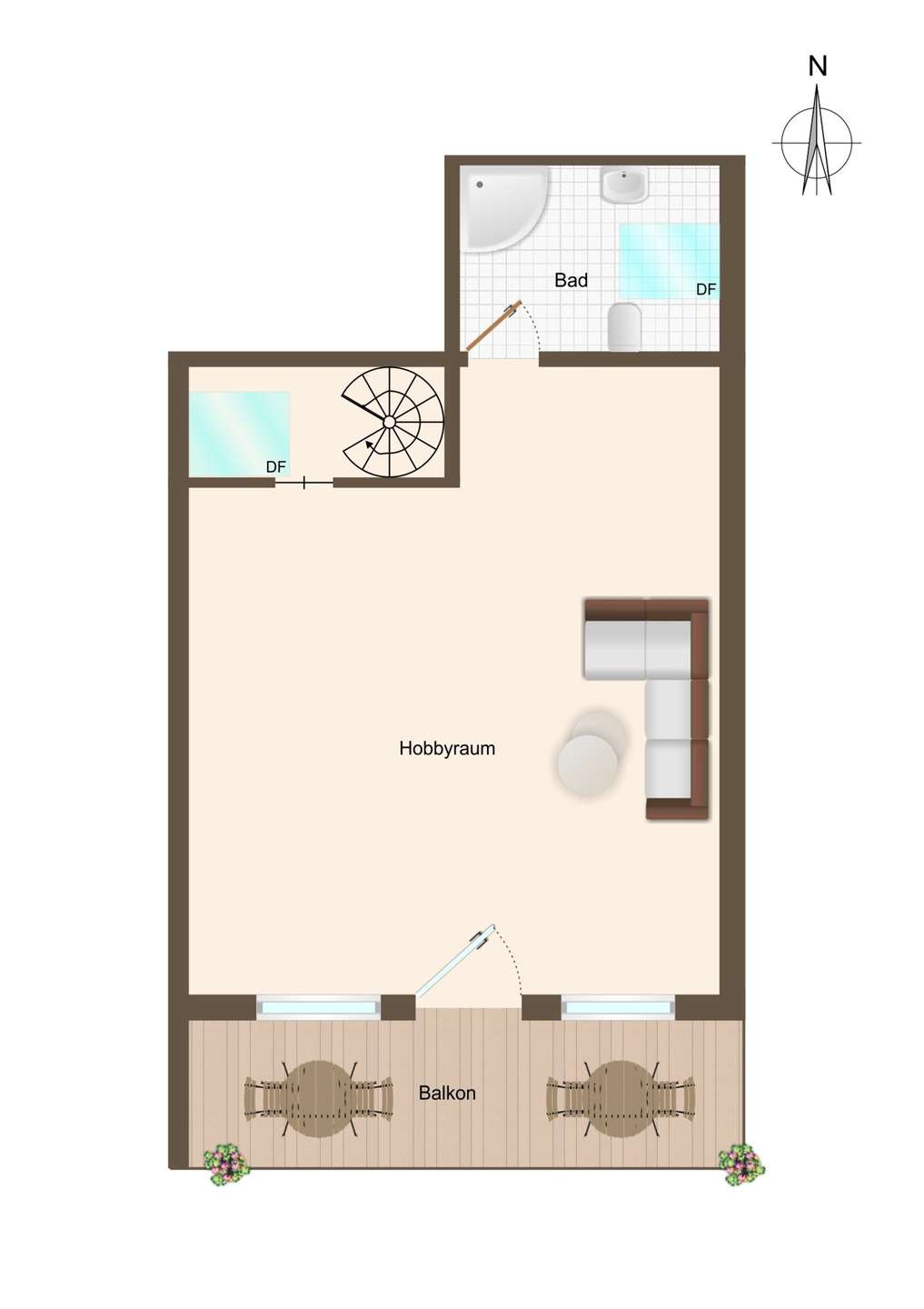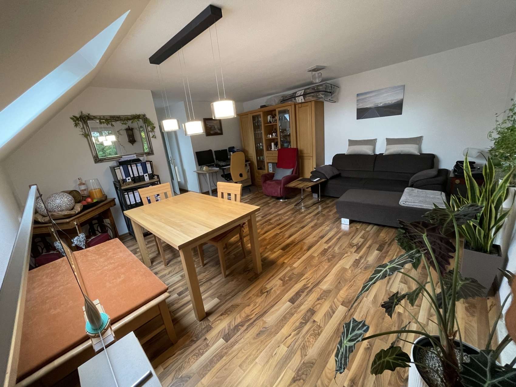 Über eine schöne Wendeltreppe gelangt man in den gemütlichen Dachraum, welcher zuletzt als Schlafzimmer genutzt wurde und mit einem offenen Kleiderschrank ausgestattet ist. Durch das zusätzliche Dachfenster erhält auch dieser Raum viel Tageslicht und bereichert zusammen mit dem angrenzenden Duschbad (mit Fenster und Toilette) diese gepflegte Wohnung. Darüber hinaus bietet ein zweiter, teilweise überdachter Balkon auch auf dieser Ebene die Möglichkeit, geschützt und heimelig seine Auszeit zu genießen.