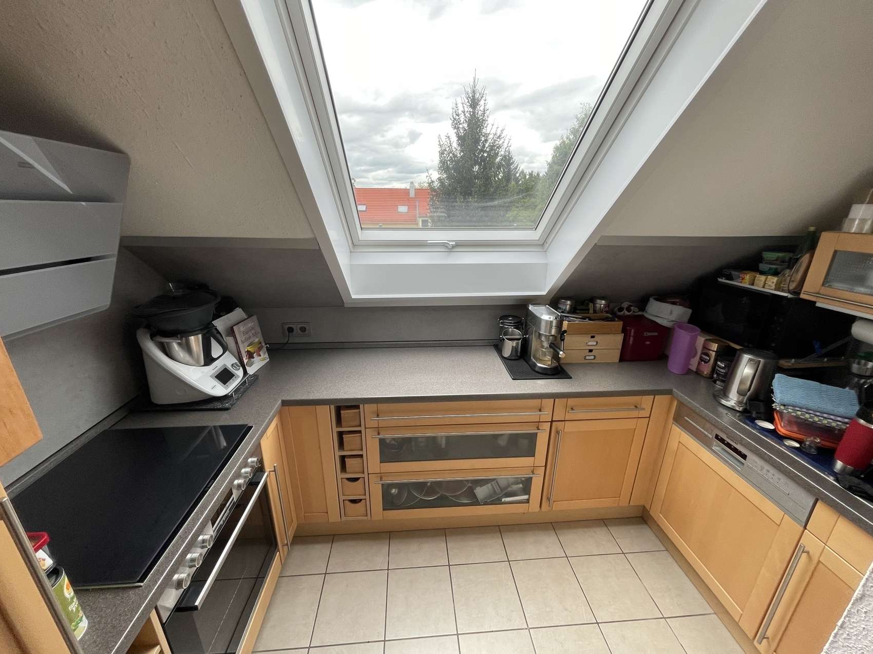 - Kunststofffenster mit Insektenschutz und Rollos - moderne Zentralheizung "Vissmann" mit Wärmerückgewinnung - 2 Südbalkone - 2 Bäder - Einbauküche - Dieleneinbauschrank - Wendeltreppe - Keller - Garage
