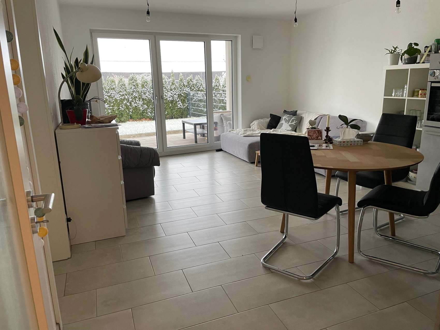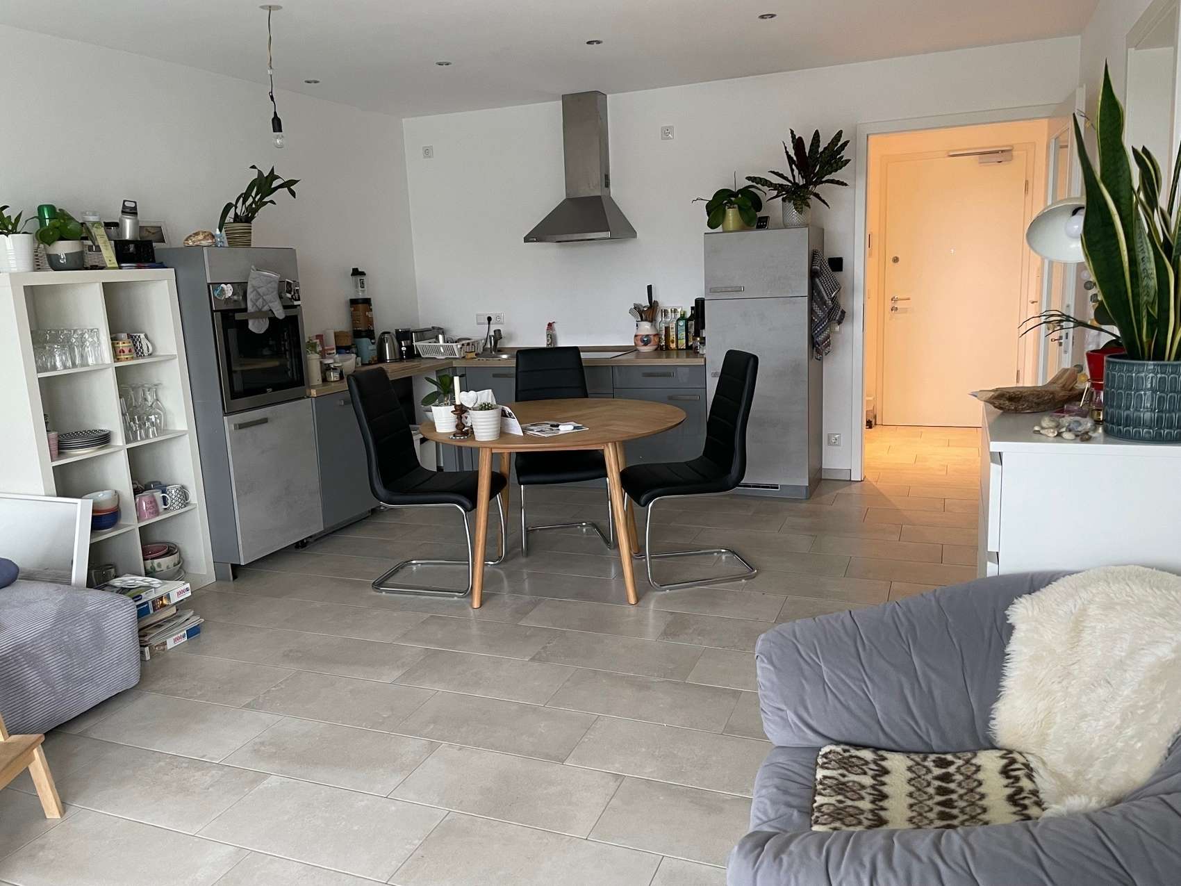 Aufgeteilt ist die Wohnung in einen Wohn-Essbereich mit integrierter Küche (Einbauküche auf dem Bild wird ausgebaut), ein Schlafzimmer sowie ein Badezimmer mit Badewanne und großer bodengleicher Dusche. Eine Abstellkammer im Eingangsbereich bietet praktischen Stauraum. Zur Wohnung gehören ein Kellerraum sowie ein extrabreiter Tiefgaragenstellplatz mit Vorbereitung für eine E-Ladestation. Neben dem Auto befinden sich ein Fahrradhalter und genügend Platz für Ihr Fahrrad. Alternativ kann hier auch wunderbar ein Motorrad oder ein Roller abgestellt werden.