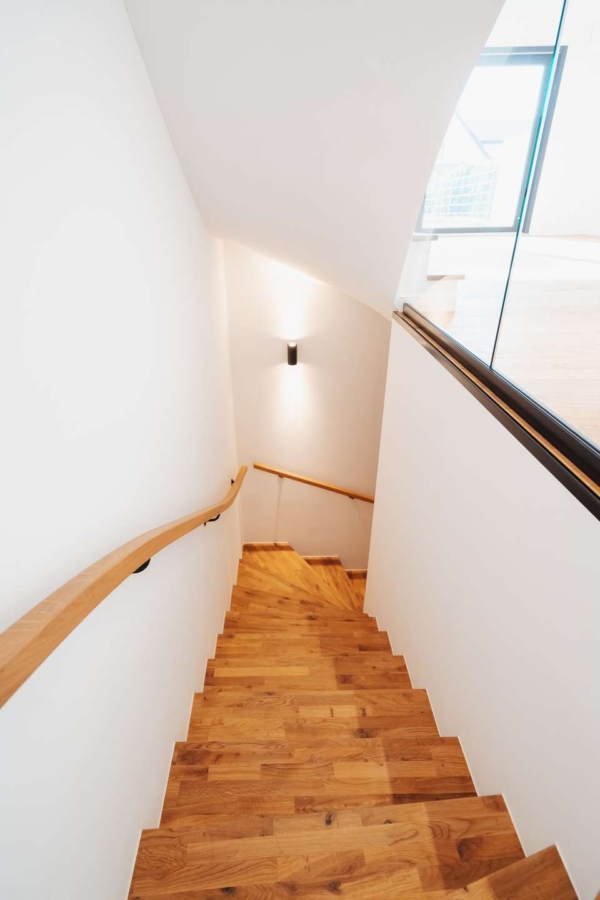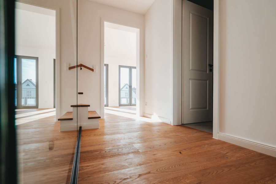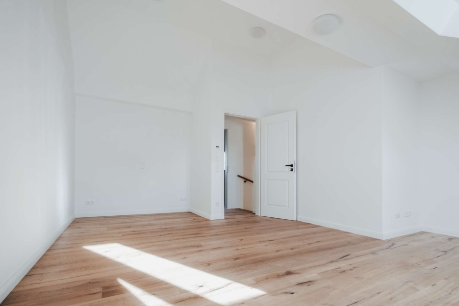 Das Haus verfügt über 5 Zimmer, 4 geräumige Schlafzimmer und 3 moderne Bäder, die für Komfort und Privatsphäre sorgen. Die hochwertige Ausstattung lässt keine Wünsche offen: Edle Parkett- und Fliesenböden, eine lichtdurchflutete Dachgeschossdecke mit 3,55 m Höhe und Deckenhöhen von 2,48 m in den anderen Etagen schaffen eine einladende Atmosphäre.