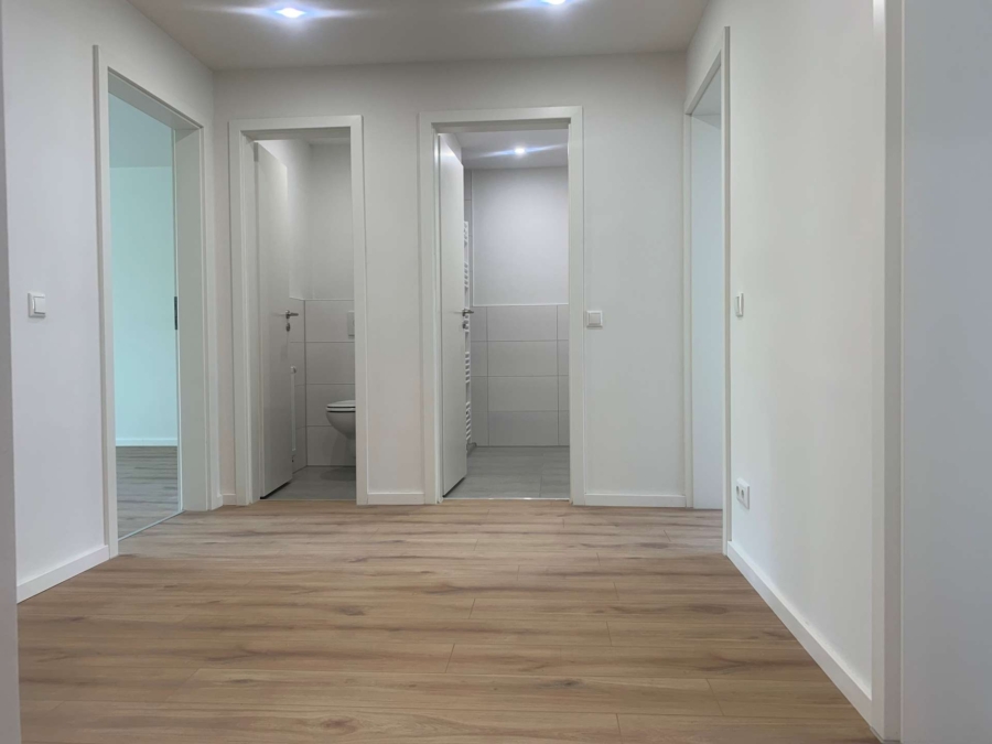* Im Flur und Bad abgehängte Decken mit LED-Spots