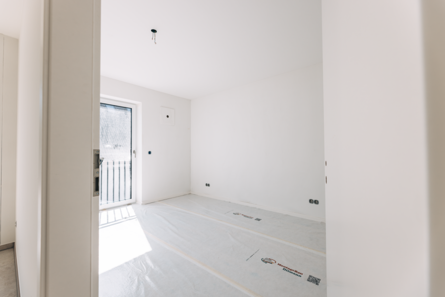 Die Wohnung verfügt über zwei geräumige Schlafzimmer und ein modernes Badezimmer, das mit hochwertigen Materialien und zeitgemäßem Design überzeugt. Die offene Gestaltung des Wohn- und Essbereichs schafft eine einladende Atmosphäre und ermöglicht eine flexible Einrichtung.