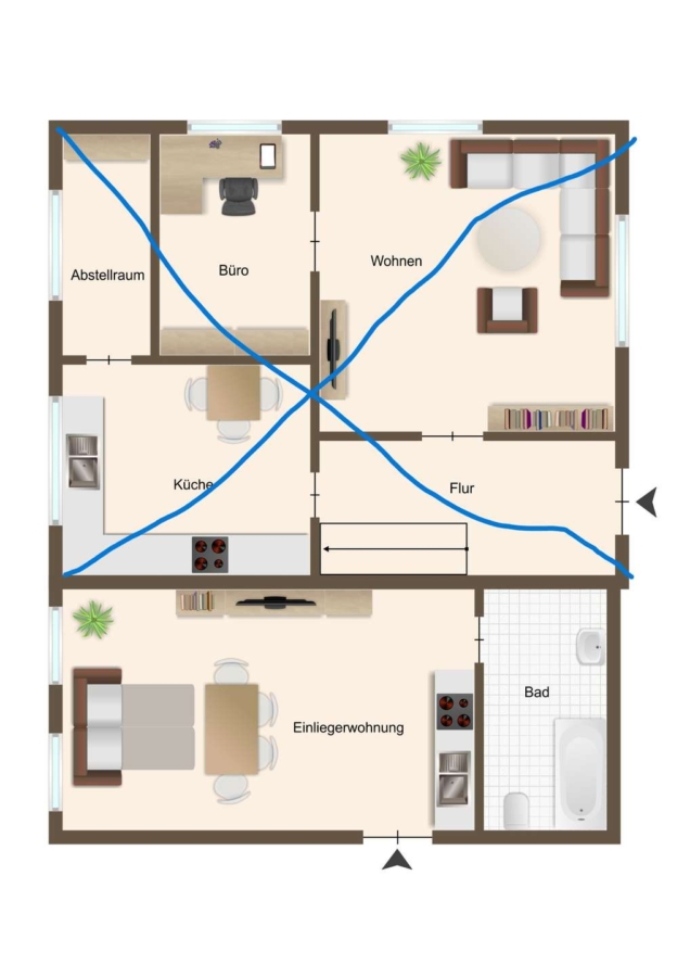 - Geräumiger Wohn/Schlafbereich mit Zugang zum Garten